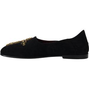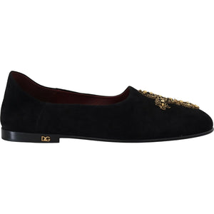 Dolce & Gabbana Black Suede Gold Cross Slip On Loafers Shoes
