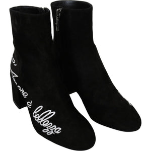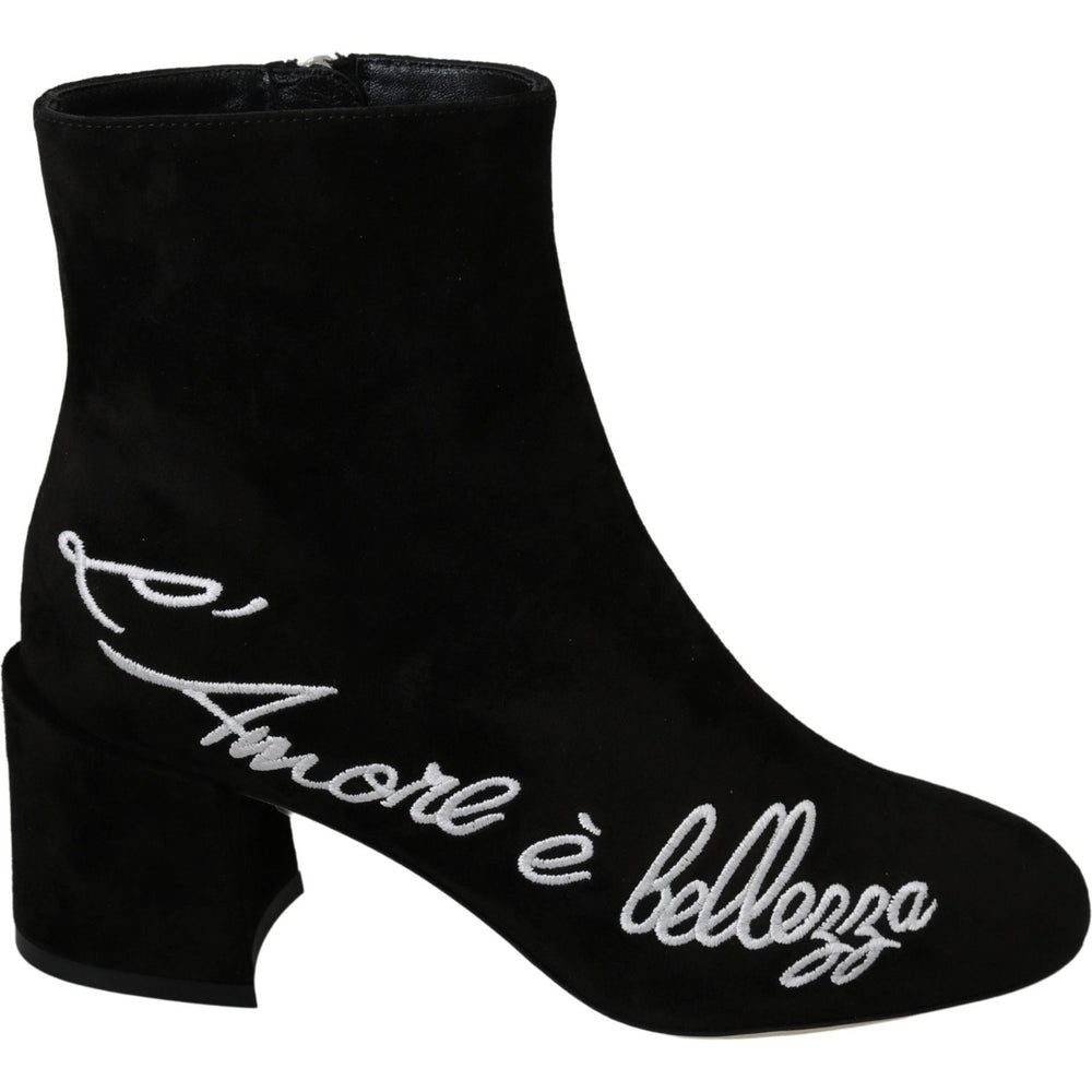 Dolce & Gabbana Black Suede L'Amore E'Bellezza Boots Shoes