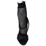 Gorgeous brand new with tags, 100% Authentic Dolce & Gabbana black stiletto heeled sandals, complementing them with a thin mesh sock made of soft textiles. Narrow criss-cross straps are crafted from velvety suede and patent leather.