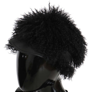 Dolce & Gabbana Black Tibet Lamb Fur Leather Gatsby Hat