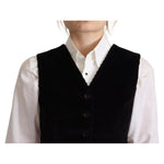 Dolce & Gabbana Black V-neck Leopard Corduroy Button Vest Top