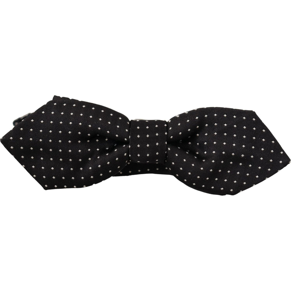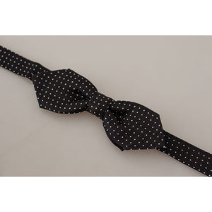 Dolce & Gabbana Black White Polka Dot Adjustable Neck Papillon Bow Tie