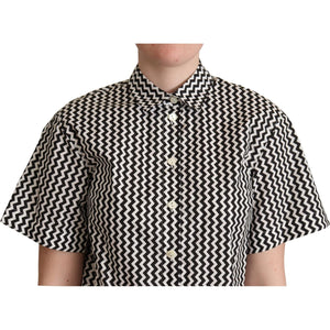 Dolce & Gabbana Black White Zigzag Collar Cotton Top Shirt