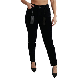 Dolce & Gabbana Blue Corduroy Mid Waist Skinny Pants Jeans