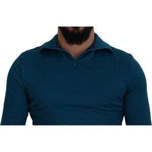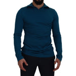Dolce & Gabbana Blue Cotton Collared Slim Pullover Sweater