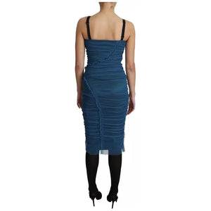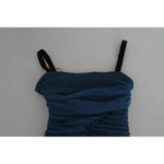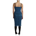 Dolce & Gabbana Blue Draped Tulle Midi Sheath Cotton Dress