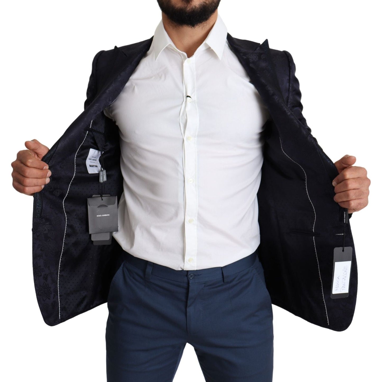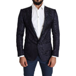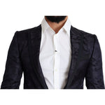 Dolce & Gabbana Blue Floral Jacquard Silk Coat MARTINI Blazer