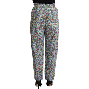 Dolce & Gabbana Blue Floral Print High Waist Denim Tapered Jeans