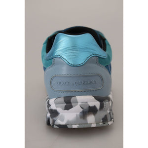 Dolce & Gabbana Blue Gray Leather Sport Low Top Sneakers