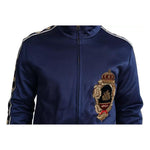 Absolutely stunning, 100% Authentic, Dolce & Gabbana blue sweatshirt with a large heraldic patch on the left chest with wide star panels accentuate the sleeves, and a striped motif on the waistband and cuffs.