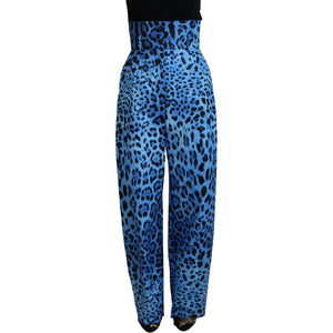Dolce & Gabbana Blue Leopard Print High Waist Pants