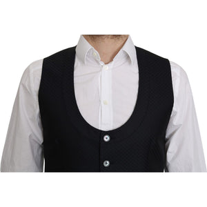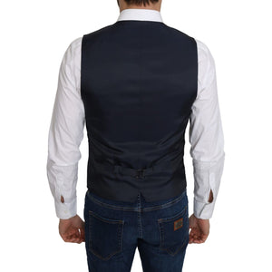 Dolce & Gabbana Blue Silk Romb Pattern Formal Coat Vest