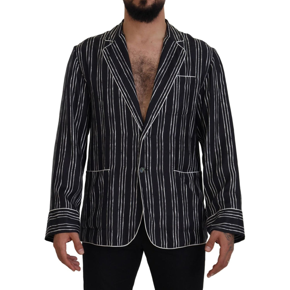 Dolce & Gabbana Blue Striped Silk Pajama Shirt Jacket