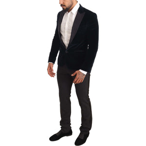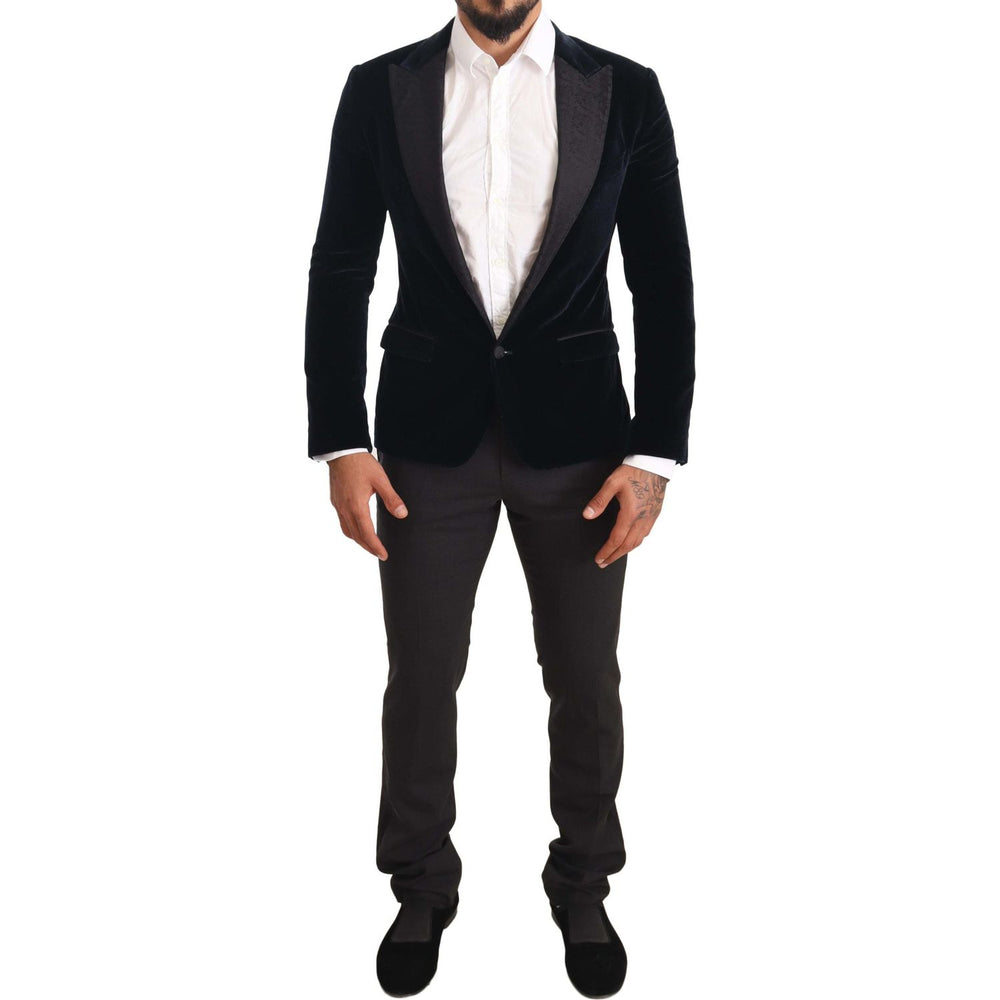 Dolce & Gabbana Blue Velvet Cotton Slim Fit Smoking Suit