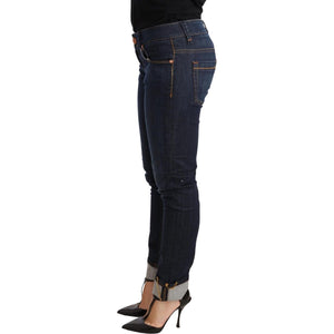 Acht Blue Washed Cotton Low Waist Skinny Denim Women Trouser Jeans