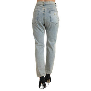 Dolce & Gabbana Blue Washed Cotton Mid Waist Skinny Jeans