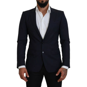 Dolce & Gabbana Blue Wool Slim Fit Formal Coat Blazer