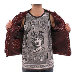 Dolce & Gabbana Bordeaux Leather Boxer Print Jacket Coat
