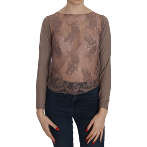 PINK MEMORIES Brown Lace See Through Long Sleeve Top