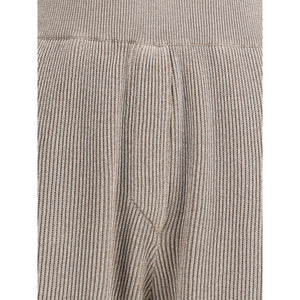 Brunello Cucinelli’s Lurex Pants combine elegance and comfort in a bright, contemporary design. The elasticized waistband ensures a relaxed fit, while the ribbed design and straight leg slim the silhouette with discretion. Two side welt pockets complete the design, combining functionality and style. A perfect garment to enrich the everyday with a touch of refined brilliance.