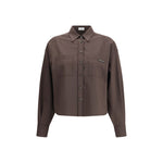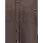 Brunello Cucinelli’s wool Shirt is a garment that combines sophistication and distinctive details. The classic collar and front button closure give the model an elegant and timeless touch, while the two patch pockets on the front, embellished with the characteristic shiny jewels, add a bright and sophisticated accent. The asymmetric hemline completes the design with a modern and dynamic detail, making this shirt perfect for elegant and sophisticated looks.
