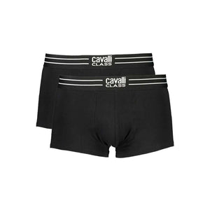 Indulge in the impeccable blend of comfort and style with Cavalli Class’s sophisticated bi-pack boxer briefs. Every pair is a statement of luxury, featuring an elastic waistband that encapsulates the iconic Cavalli Class logo amidst a sleek black canvas. Crafted from a premium mix of 95% cotton and 5% elastane, these boxers promise a perfect fit and unparalleled comfort, making them a core addition to your everyday essentials. Elevate your underwear collection with the finesse of Cavalli Class today.