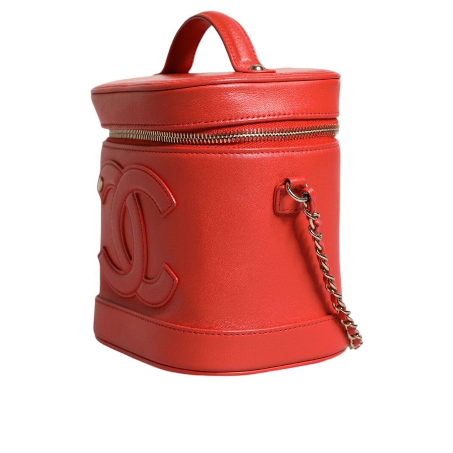This Chanel Leather Orange Coco Mark Vanity Chain Shoulder Hand Purse Bag 28 Series.