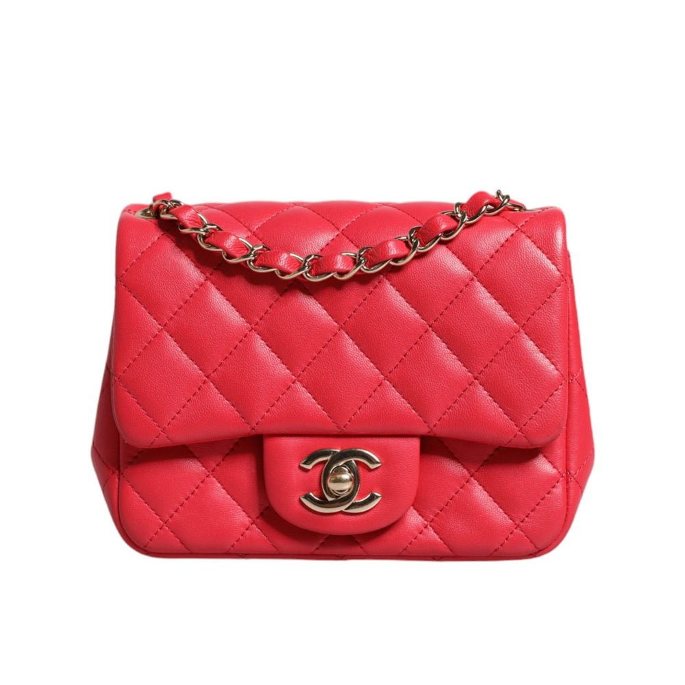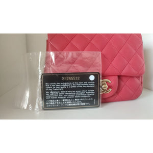This Chanel Mini Bag gorgeous pink quilted lambskin leather.