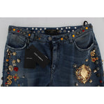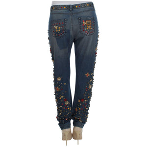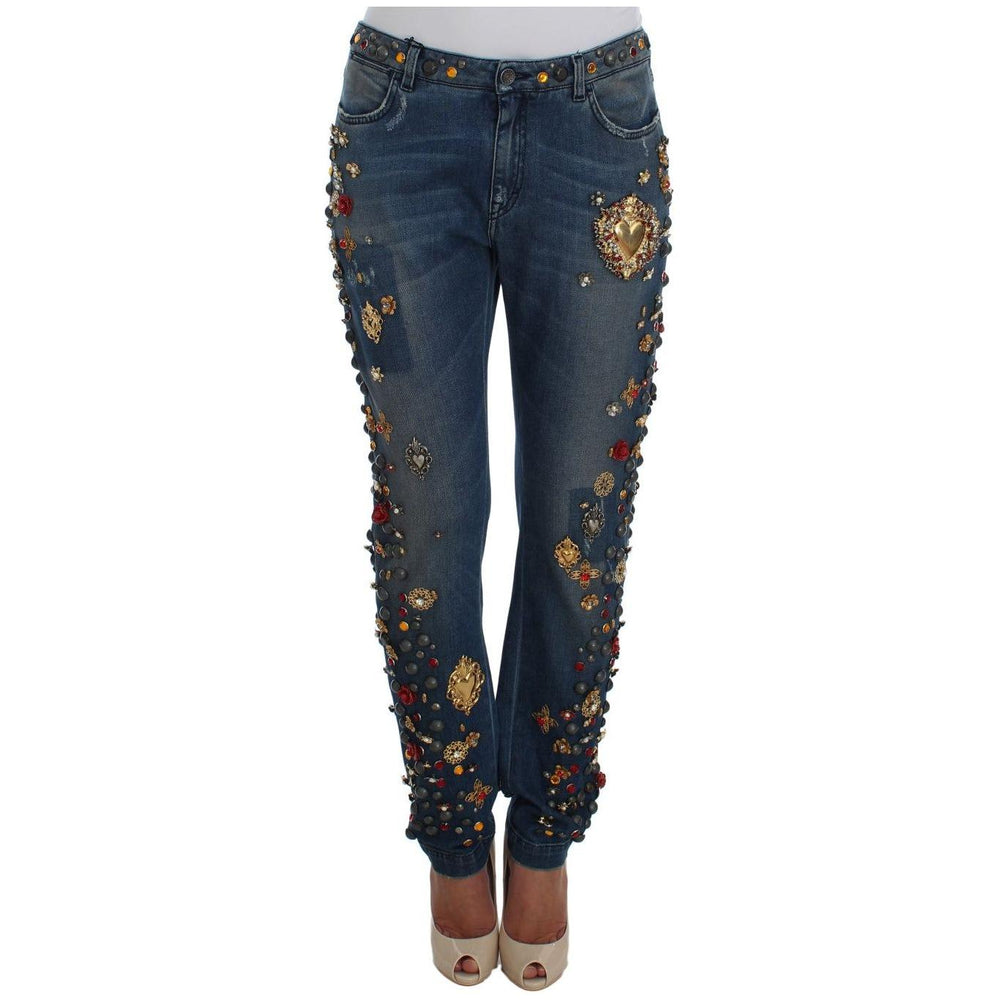 Gorgeous brand new with tags, 100% Authentic Dolce & Gabbana blue wash crystal heart Roses embellished enchanted Sicily boyfriend fit jeans. This item comes from the exclusive MainLine Dolce & Gabbana Collection.