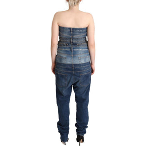 Dolce & Gabbana Dark Blue Cotton Strapless Denim Jumpsuit Dress