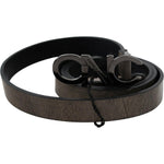 Costume National Dark Brown Leather Letter Logo Buckle Belt