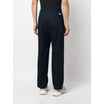 straight-leg cotton trousers from Department 5 featuring midnight blue, cotton blend, belt loops, logo patch to the rear, straight leg, hook and zip fly fastening and two rear button-fastening jetted pockets. Wide leg trousers Size and Fit - This piece fits true to size. We recommend you get your regular size. Model is 1,84m / 6ft 1in wearing size 32 (WAIST CM)