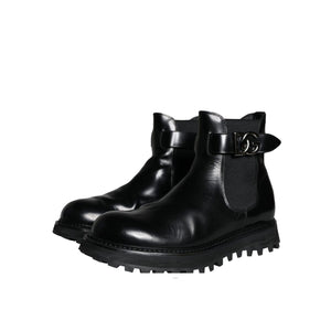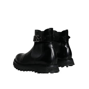 Dolce & Gabbana Black Belted DG Logo Men Chelsea Boots Shoes