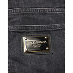 Dolce & Gabbana Black Cotton Slim Fit Distressed Ripped Logo Jeans