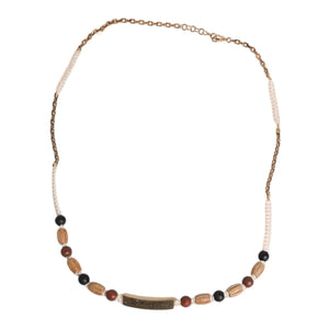 Dolce & Gabbana Black Gold Wooden Beaded Logo Pendant Necklace