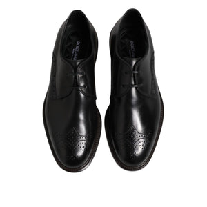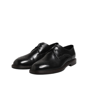 Dolce & Gabbana Black Leather Derby Wingtip Formal Shoes