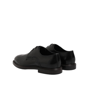 • Dolce & Gabbana Black Leather Derby Wingtip Formal Shoes