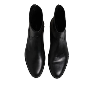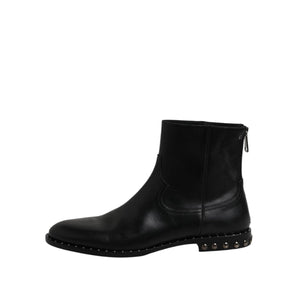 Dolce & Gabbana Black Leather Logo Ankle Boots Studded Shoes