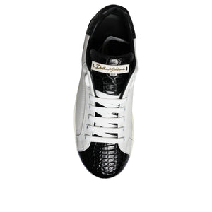 Dolce & Gabbana Black Leather Logo Portofino Sneaker Shoes