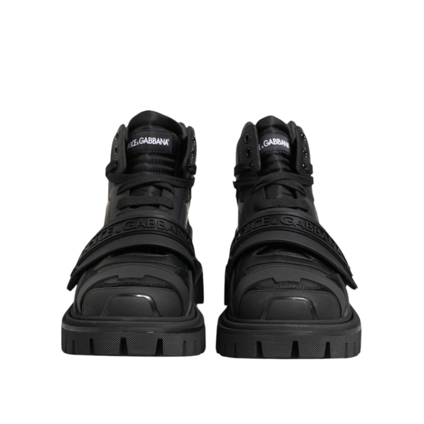 Dolce & Gabbana Black Leather Trekking Sneakers Boots Shoes