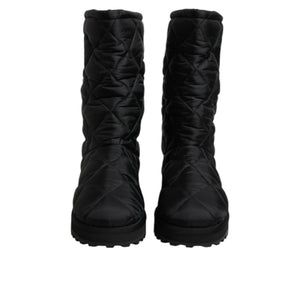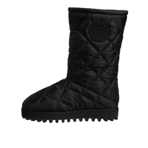 • Dolce & Gabbana Black Polyester Padded Mid Calf Boots Winter Shoes