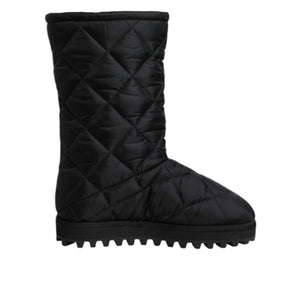 Dolce & Gabbana Black Polyester Padded Mid Calf Boots Winter Shoes