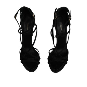 Dolce & Gabbana Black Suede Ankle Strap Heels Sandals Shoes