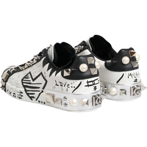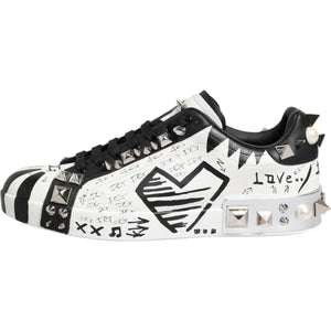 Dolce & Gabbana Black White Studded Low Top Sneakers Shoes