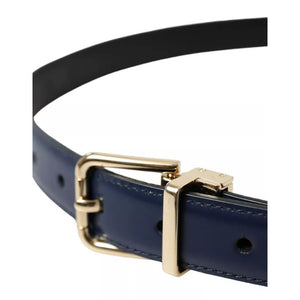 Dolce & Gabbana Blue Leather Gold Metal Buckle Men Belt
