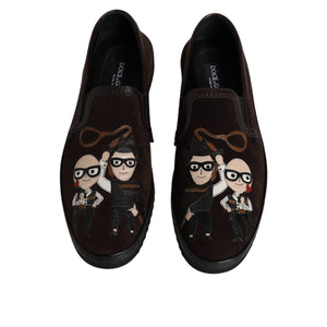 Dolce & Gabbana Brown Suede DG Family Slip On Flats Shoes
