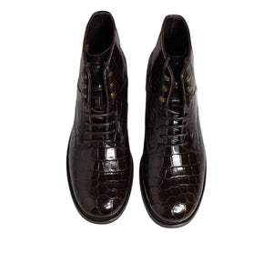 Dolce & Gabbana Dark Brown Leather Lace Up Short Boots Shoes