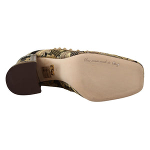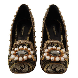 Dolce & Gabbana Gold Crystal Square Toe Brocade Pumps Shoes