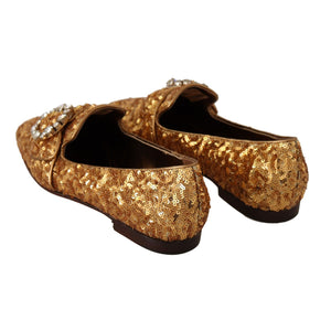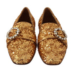 Dolce & Gabbana Gold Sequin Crystal Flat Women Loafers Shoes