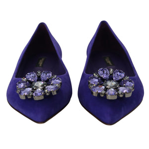 Dolce & Gabbana Purple Suede Crystals Loafers Flats Shoes